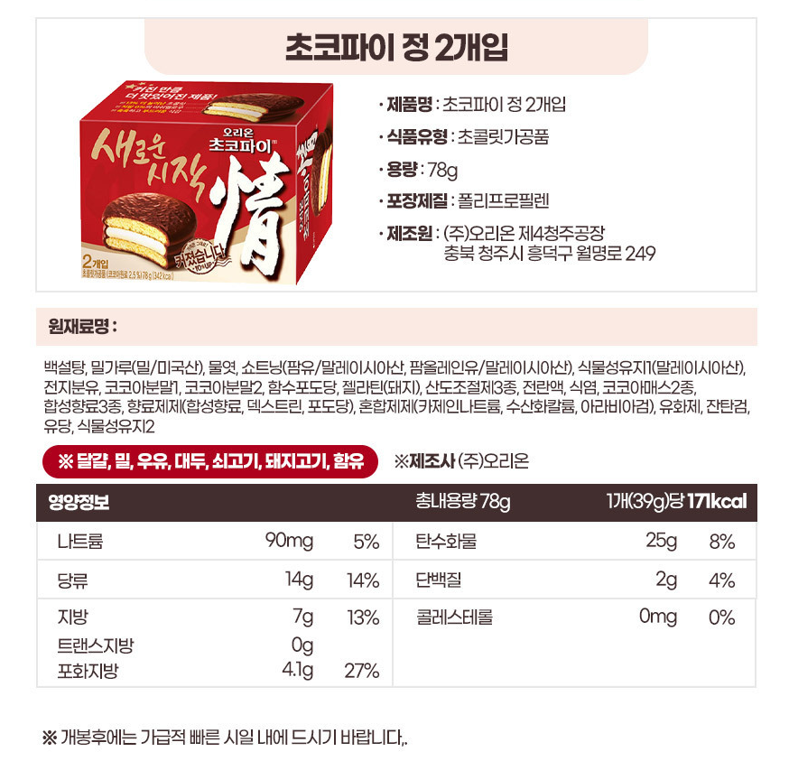 »óǰ¸í [¿À¸®¿Â] ÃÊÄÚÆÄÀÌ 78g 2°³ÀÔ