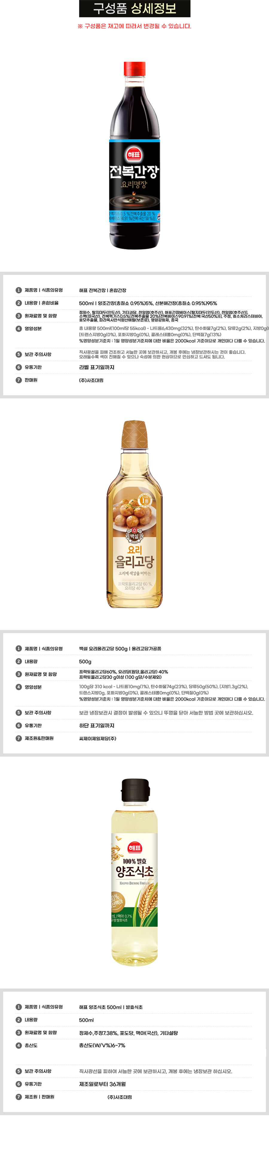 Áø°£Àå 500ml + ¾çÁ¶½ÄÃÊ 500ml + ¿ä¸®¿Ã¸®°í´ç 500g